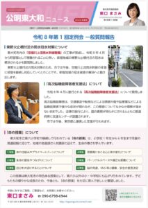 【公明東大和ニュース2026年春号】 令和8年第一回定例会の内容を載せたニュースが出来ました。 ぜひ、ご覧ください。 少しずつですが、皆様のお宅にもお届けしています。
